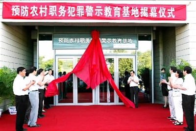 8月10日,北京市延慶縣檢察院與縣紀委聯合建立的“延慶縣預防農村職務犯罪警示教育基地”舉行揭牌儀式。該基地將成為延慶乃至北京市農村兩委干部、涉農部門干部和大學生村官開展廉政教育的一個重要活動場所。