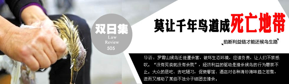 監(jiān)管和法律意識(shí)的雙層缺失,使在羅霄山脈附近,已經(jīng)形成一個(gè)類似于合法化的野生動(dòng)物交易市場,加之大眾的貪吃陋習(xí),更使這條千年鳥道上候鳥聲聲哀鳴、被踐踏的生命血跡斑斑。
