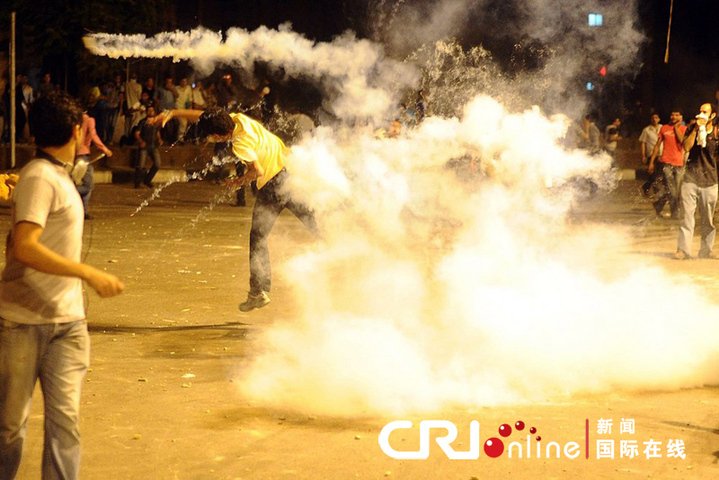 2011年6月29日,埃及首都開羅解放廣場爆發大規模流血沖突,數以千計的游行民眾向警察和安全部隊士兵投擲石塊,后者則以警棍、催淚瓦斯、眩暈彈和橡皮子彈等加以還擊,并朝天鳴槍以驅散游行者。