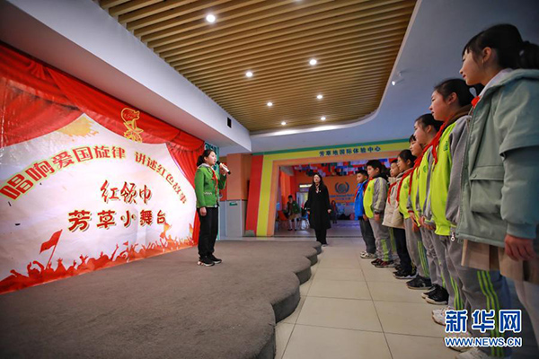 3月12日,貴陽(yáng)市云巖區(qū)芳草地國(guó)際學(xué)校學(xué)生在講述紅色故事。