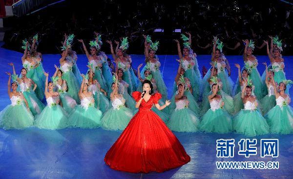 6月30日晚,演員在大型文藝晚會(huì)《唱支山歌給黨聽(tīng)》中表演。當(dāng)日,為慶祝中國(guó)共產(chǎn)黨成立90周年,云南省精心策劃的大型文藝晚會(huì)《唱支山歌給黨聽(tīng)》在昆明市體育館舉行。該晚會(huì)以紅色經(jīng)典為主線,結(jié)合云南獨(dú)特的少數(shù)民族風(fēng)情,運(yùn)用獨(dú)唱、合唱、舞蹈、朗誦等多種藝術(shù)形式和聲光電等技術(shù)手段,謳歌中國(guó)共產(chǎn)黨90年的光輝歷程和豐功偉績(jī)。新華社記者 藺以光 攝