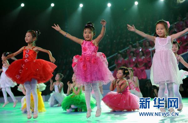 6月30日晚,一些小演員在大型文藝晚會(huì)《唱支山歌給黨聽(tīng)》中表演。當(dāng)日,為慶祝中國(guó)共產(chǎn)黨成立90周年,云南省精心策劃的大型文藝晚會(huì)《唱支山歌給黨聽(tīng)》在昆明市體育館舉行。該晚會(huì)以紅色經(jīng)典為主線,結(jié)合云南獨(dú)特的少數(shù)民族風(fēng)情,運(yùn)用獨(dú)唱、合唱、舞蹈、朗誦等多種藝術(shù)形式和聲光電等技術(shù)手段,謳歌中國(guó)共產(chǎn)黨90年的光輝歷程和豐功偉績(jī)。新華社記者 藺以光 攝