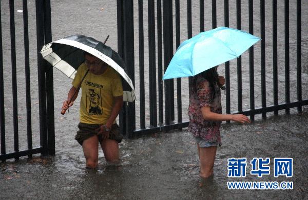 7月3日,兩名市民在成都市武侯區(qū)長(zhǎng)壽南路涉水前行。當(dāng)日,四川省成都市遭暴雨襲擊,多處路段積水嚴(yán)重,給市民出行帶來(lái)不便。據(jù)四川省氣象臺(tái)發(fā)布的信息,成都市3日傍晚到4日晚間仍有明顯的降雨天氣過(guò)程。新華社發(fā)(薛玉斌 攝)