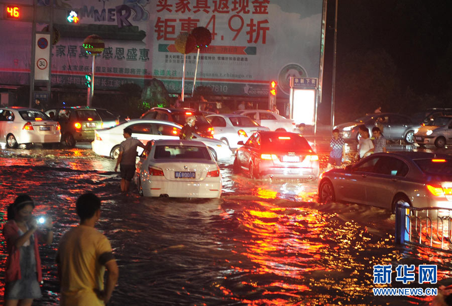 7月3日20時(shí)30分左右,成都市雙流縣華陽(yáng)鎮(zhèn)一處交通路口被淹沒(méi)。新華社記者 陳?ài)?攝