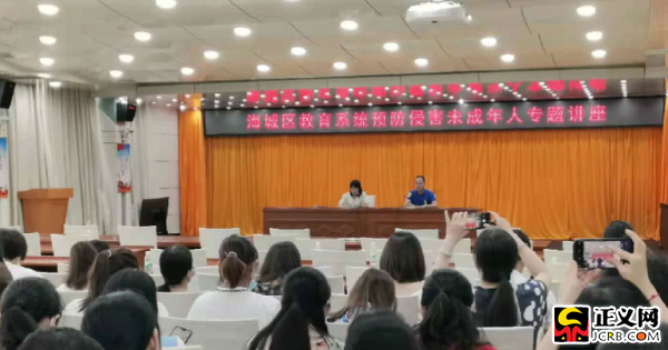 正義網北海5月26日電(通訊員秦玄怡)5月22日,廣西壯族自治區北海市海城區檢察院黨組成員、副檢察長李虹應邀向海城區轄區所有中小學校長、幼兒園園長宣傳“強制報告制度”。