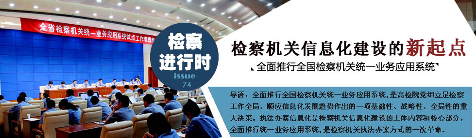 全面推行統一業務應用系統,是檢察機關執法辦案方式的一次革命,是檢察信息化的基礎,也是未來幾年檢察信息化建設的重點和主體。各級檢察機關要以全面推行統一業務應用系統為契機,大力推進電子檢務工程建設,進一步發揮信息化對檢察工作的支撐作用。