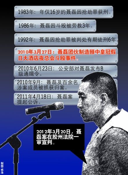 記者了解到,2010年9月,青島公安機關經過深入調查、縝密偵查,一舉摧毀了以聶磊為首的涉嫌黑社會性質犯罪組織,首犯聶磊及百余名成員被抓獲歸案。