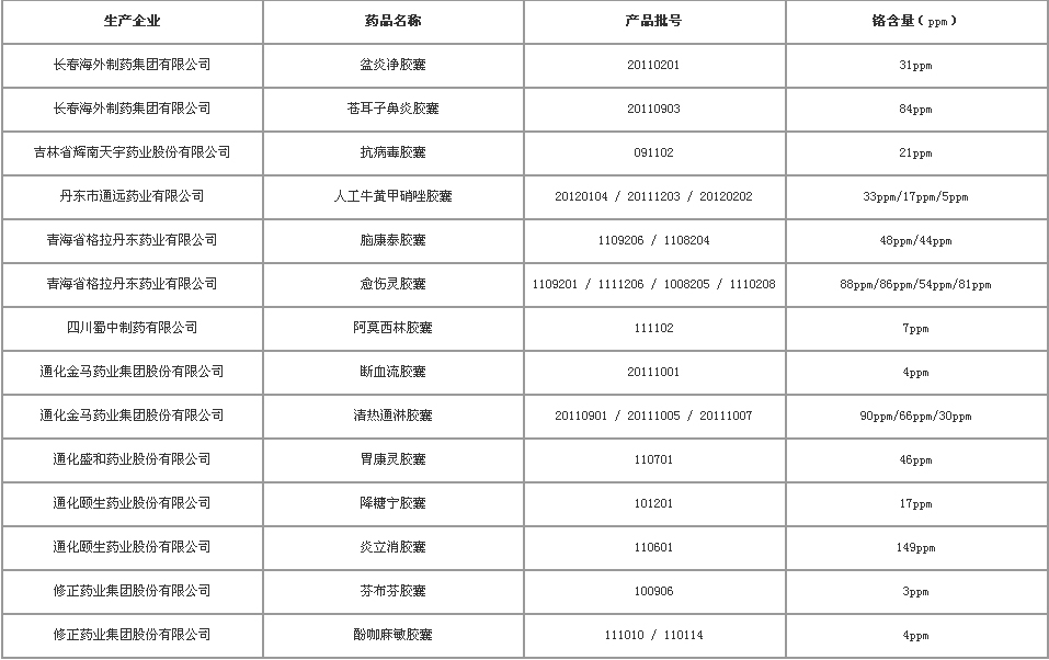 >>14種用膠囊鉻超標藥品