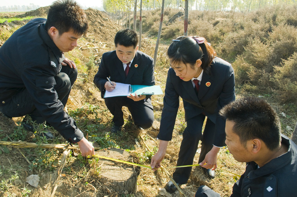 10月30日,涿州市檢察院公訴檢察官會同公安民警在該市大豹子村北路旁測量被濫伐的樹木。今年以來,河北省涿州市先后發(fā)生兩起未經(jīng)林業(yè)部門許可濫伐樹木共計1032棵141.67立方米,涿州市檢察官及時介入現(xiàn)場固定證據(jù),對涉嫌濫伐樹木的五人先后依法提起了公訴,有力的打擊了犯罪,促進了城鄉(xiāng)綠化亮化建設(shè)。