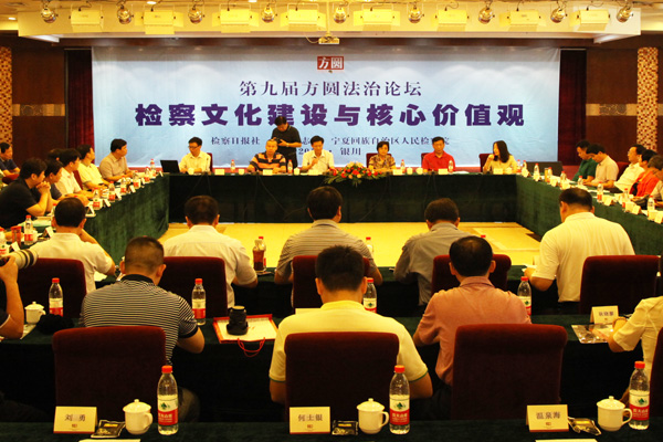8月16日,“檢察文化建設與核心價值觀”研討會暨第九屆方圓法治論壇在寧夏回族自治區銀川市召開。來自高檢院和15個省、市、自治區檢察機關的相關負責人和專家學者等90多名代表圍繞“以檢察文化建設提高隊伍素質”和“以檢察文化建設提高執法公信力”兩個議題展開深入探討。