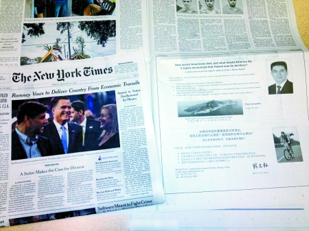 至于為何要在《紐約時報》登廣告,陳光標給出了三條理由:第一,《紐約時報》是世界知名嚴肅大報,各國政要都非常關注,在上面刊登廣告是向世界鄭重表達釣魚島是中國領土的堅定立場。第二,二戰以來,美國和日本一直有著特殊的關系,希望美國政要和民眾尊重中國主權,給日本右翼分子壓力,發揮美國作為世界超級大國在維護西太平洋地區穩定和安全方面的作用。第三,是想表達中國企業家捍衛祖國領土和主權決心,盡到愛國企業家的責任。
