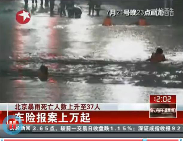 ·時(shí)間:7月21日 ·地點(diǎn):北京及部分北方地區(qū) ·交通:北京主要交通管網(wǎng)多處積水,城區(qū)95處道路因積水?dāng)嗦贰?nbsp; ·地鐵:北京地鐵機(jī)場(chǎng)線一度故障致部分停運(yùn),22時(shí)恢復(fù)運(yùn)營(yíng),并延長(zhǎng)運(yùn)營(yíng)一小時(shí)。 ·機(jī)場(chǎng):截至22日凌晨3點(diǎn),首都機(jī)場(chǎng)取消了545架的航班。 ·傷亡:已致37人遇難。