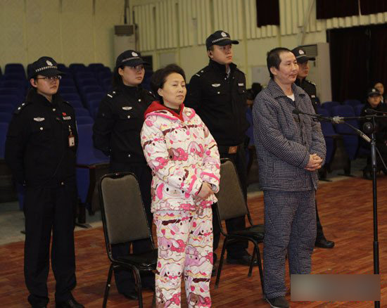 12月7日,經最高人民法院核準,重慶賣淫集團女“黑老大”王紫綺(前左)在當地被執行死刑。圖為王紫綺7日在重慶五中院大審判庭。中新社發陳銅 攝