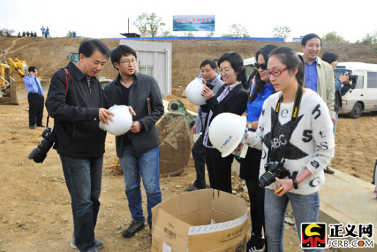 “看得見(jiàn)的正義”中央新聞媒體采訪團(tuán)參觀河南省南陽(yáng)市淅川縣渠首工地現(xiàn)場(chǎng)。閆昭 攝