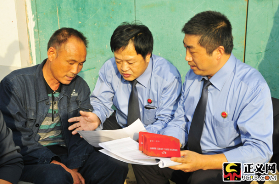 河南省南陽(yáng)市淅川縣檢察院檢察官正在跟村民核對(duì)移民拆遷款的金額。閆昭 攝