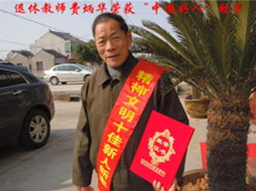 費炳華,74歲,江蘇宜興市和橋鎮人,退休15年來與妻子在家創辦“留守兒童之家”,并先后收留漁家子弟300多人次,為他們提供生活照料和學習輔導,費老的善舉讓一批批缺少父母關愛的孩子在宜興開心生活、健康成長,2012年,費炳華老人被評為“中國好人”。