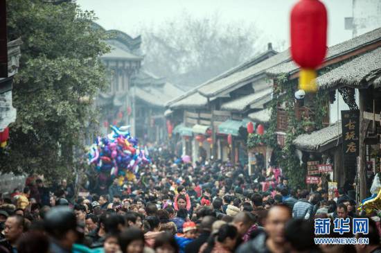 2014年2月2日,游客在成都洛帶古鎮(zhèn)景區(qū)游玩,2014年春節(jié)黃金周期間,全國共接待游客2.31億人次。