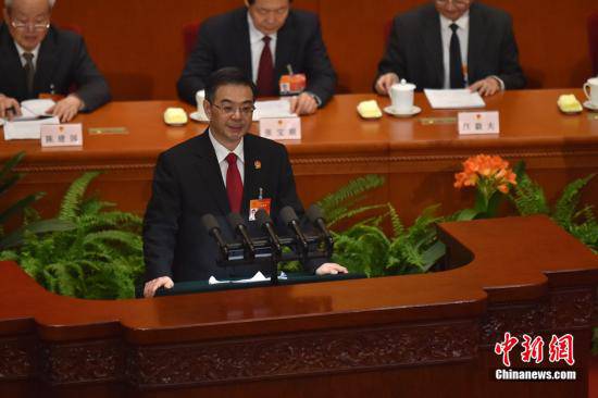 3月12日上午9時(shí),第十二屆全國(guó)人民代表大會(huì)第三次會(huì)議在人民大會(huì)堂舉行第三次全體會(huì)議,聽(tīng)取最高人民法院院長(zhǎng)周強(qiáng)關(guān)于最高人民法院工作的報(bào)告,聽(tīng)取最高人民檢察院檢察長(zhǎng)曹建明關(guān)于最高人民檢察院工作的報(bào)告。圖為周強(qiáng)作關(guān)于最高人民法院的工作報(bào)告。中新社記者 金碩 攝