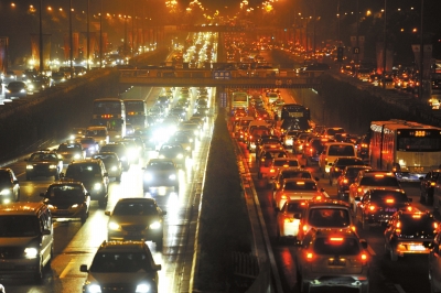 北京市東三環(huán)南北方向主輔路擁堵嚴(yán)重。(資料圖片)京華時(shí)報(bào)記者潘之望攝
