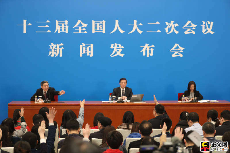3月4日,十三屆全國人大二次會議在人民大會堂新聞發布廳舉行新聞發布會,由大會發言人張業遂就大會議程和人大工作相關的問題回答中外記者提問。正義網記者張哲 攝