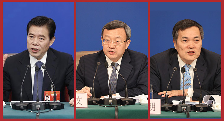 正義網北京3月9日電(宋書敏)十三屆全國人大二次會議新聞中心3月9日在梅地亞中心新聞發布廳舉行記者會,邀請商務部部長鐘山、副部長兼國際貿易談判副代表王受文、副部長錢克明就“促進形成強大國內市場 推動全方位對外開放”相關問題回答中外記者提問。