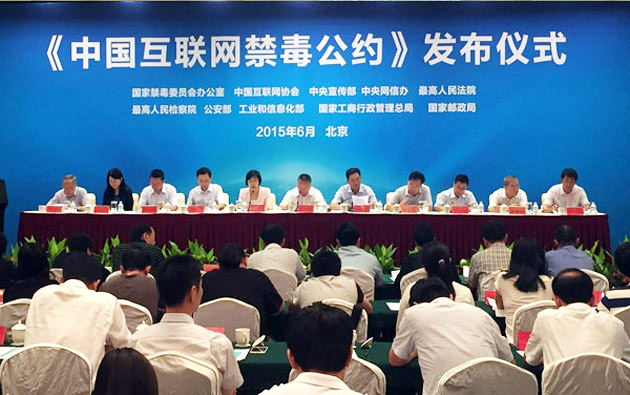 2015年6月29日,國家禁毒委員會辦公室牽頭會同中央宣傳部、中央網絡安全和信息化領導小組辦公室、最高人民法院、最高人民檢察院、公安部、工業和信息化部、國家工商行政管理總局、國家郵政局和中國互聯網協會,在北京聯合發布《中國互聯網禁毒公約》(以下簡稱《公約》)。50家國內主要互聯網企業以及5家寄遞企業負責人現場簽署承諾書,宣誓對網絡涉毒問題保持“零容忍”。