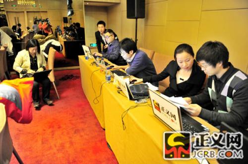 12月24日上午9時,由正義網(wǎng)與騰訊微博主辦的“政法微博與社會管理創(chuàng)新”峰會將在北京召開。與會嘉賓將就政法信息微博公開現(xiàn)狀、突發(fā)政法輿情微博應(yīng)對機制、政法官員微博內(nèi)容規(guī)范、微博問政與社會管理創(chuàng)新等問題進(jìn)行探討。會議開始前,正義網(wǎng)工作人員忙著做各項準(zhǔn)備工作。楊征 謝天維/攝