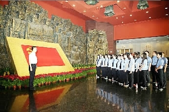 檢察干警在中國人民抗日戰爭紀念館重溫入黨誓詞。