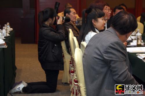 3月4日,全國政協十一屆二次會議小組討論會場上的攝影記者。 記者孟澍菲攝