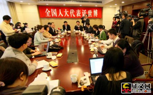 3月3日下午,上海代表團的8位全國人大代表通過“東方網”現場直播,與網友“話世博”。傅偉攝影報道