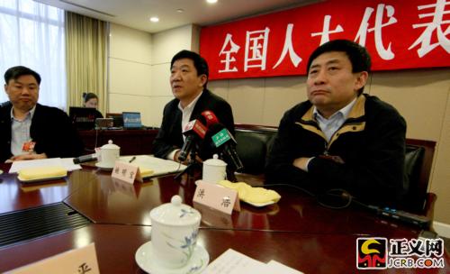 洪浩代表(右一)和姚明寶代表(中)回答網友的提問。傅偉攝影報道