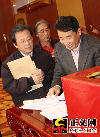 有關(guān)媒體報(bào)道貧困地區(qū)十萬小學(xué)生中有九萬手中無字典現(xiàn)象,希望能得到社會(huì)幫助。3月12日,在姜昆委員的呼吁下,中國文學(xué)藝術(shù)基金會(huì)在代表、委員中間開展向貧困地區(qū)小學(xué)獻(xiàn)愛心“字典援助活動(dòng)”,代表委員們紛紛慷慨解囊,積極捐款捐書。圖為“字典援助活動(dòng)”現(xiàn)場。徐伯黎/攝