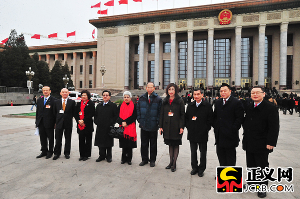 3月14日上午,第十一屆全國人民代表大會第四次會議在北京人民大會堂舉行閉幕會。會議批準(zhǔn)了政府工作報告、“十二五”規(guī)劃綱要、全國人大常委會工作報告及“兩高”工作報告。圖為澳門代表團在人民大會堂前合影留念。程丁/攝