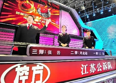 2011年9月14日,首屆全國公訴人與律師電視論辯大賽在北京舉行。圖為江蘇公訴隊正在陳詞激辯。本報記者程丁攝