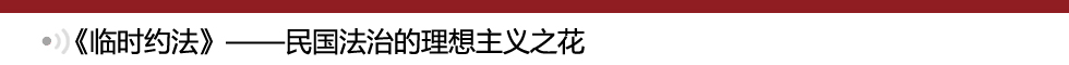 臨時約法——民國法治的理想主義之花 臨時約法僅在總綱部分規定了中華民國的領土構成,在第三章參議院部分也僅提到地方參議員的分配名額。因此,臨時約法沒有對中華民國的國家結構作出明確規定。對于地方制度問題沒有涉及,這就為以后的軍閥割據買下了隱患;臨時約法第二章專門規定了人民的政治權利與自由,體現了“民權”的原則。但是卻沒有規定如何保障人民享有這些權利和自由。更有甚者,第一五條規定“本章所載人民之權利,有認為增進公益,維持治安,或非常緊急必要時,得以法律限制之”,這就為獨裁者提供了法律上的借口。
