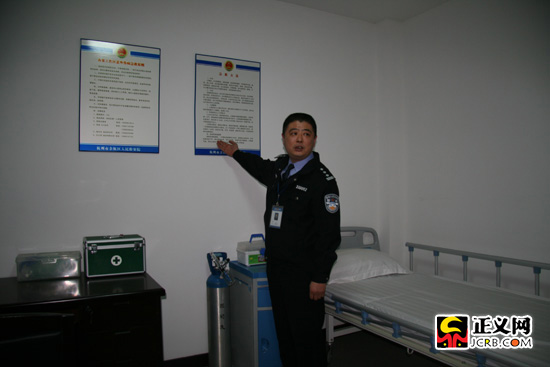 今年5月份,一位犯罪嫌疑人劉某在接受詢問中突感不適,辦案人員立刻中止審訊,啟動醫療救援處置預案,隨后醫學專家于15分鐘內迅速趕到訊問室,對犯罪嫌疑人進行檢查,最終確診為高血壓,犯罪嫌疑人的病情很快得到控制,一起可能發生的辦案安全事故得到了及時避免。
