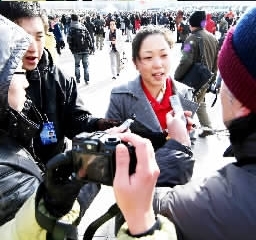 作為三位農(nóng)民工全國人大代表之一,來自上海的朱雪芹代表當(dāng)然不能被媒體記者“放過”。來者不拒,朱雪芹從容應(yīng)答。