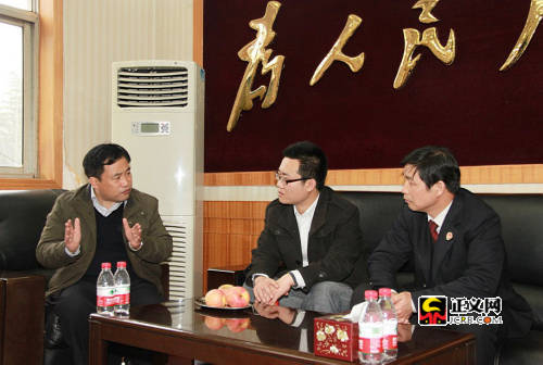 硤石監(jiān)獄監(jiān)獄長(zhǎng)張?zhí)煜橄蛘x網(wǎng)記者介紹監(jiān)所檢察室的相關(guān)工作。姚宇/攝