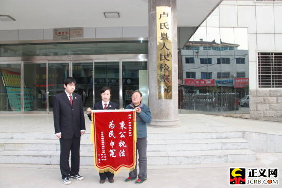 正義網河南12月5日電(記者 侯文昌 見習記者 林平)12月2日下午,盧氏縣城關鎮石橋村村民王大媽來到盧氏縣人民檢察院向該院民行科檢察官贈送了一面錦旗。“檢察院為我辦了一件實事,這一次我是來表達感謝的”,見到記者時,王大媽這樣表示。