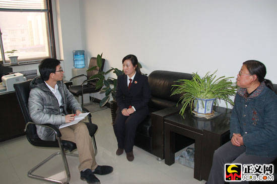 12月2日下午,正義網記者向盧氏縣人民檢察院民行科科長陳靜和盧氏縣城關鎮石橋村王大媽了解案情。姚宇/攝