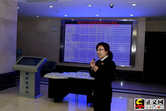 12月4日上午,新鄭市人民檢察院工作人員向正義網記者詳解便民查詢服務系統。姚宇/攝